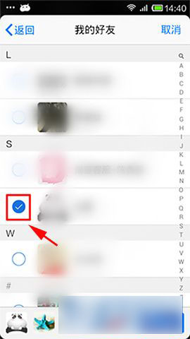2)出现选择来源,可从人脉圈、群、或者讨论组选择,还可以从最近联系人和我的好友中选择,像小编选择我的好友,出现好友列表,√选好友,点击确定;(如下图所示)