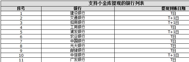 值得一提的是,目前京东小金库提现仅支持借记卡,支持小金库提现转出的银行列表,如下: