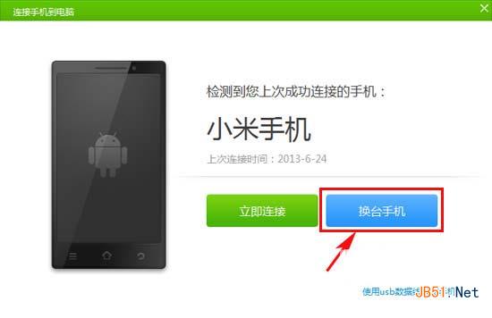 3)如果,你使用的电脑曾经使用过“无线连接手机”功能,系统会提示是否直接连接上次使用连接的手机设备,如果需要换另外一台移动设备,可以点击“换台手机”。(如下图所示)