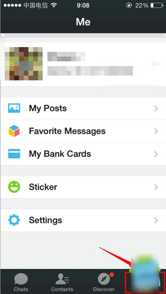 打开微信选择<Me>