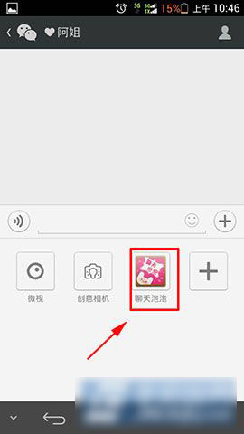 2)下载完毕之后,我们打开微信,然后在聊天页面的右下方的“+”点击进去,然后在“+”中把“微信聊天泡泡”添加到附件栏中。(如下图所示)