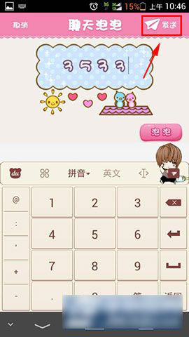 3)最后在“+”中我们就可以看到“微信聊天泡泡”,然后点击打开,选择想要使用的气泡,然后在气泡中输入文字,就可以发送了。(如下图所示)