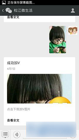 3)在“松江微生活”中,发送你需要加V的图片,不需要多久,就会发现“成功加V”的回复,下载加V的图片,然后更换掉你的微信头像,就可以发现微信头像已经成功加V了。(如下图所示)