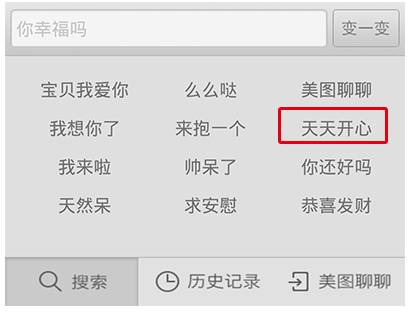 1、选择任意关键字或者在输入框里面输入想要的文 字,比如“你幸福吗”,下面举例为:点击选择”天 天开心“。
