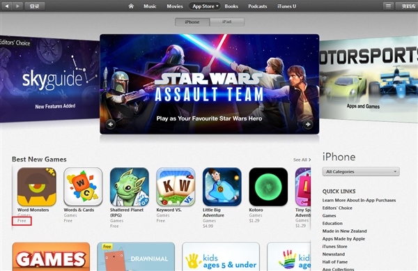 第二步:找到免费注册入口。进入对应下载区(如新西兰区)后,找到如下图中的App Store下拉按钮,点击翻开并找到Game选项,切换到游戏列表。