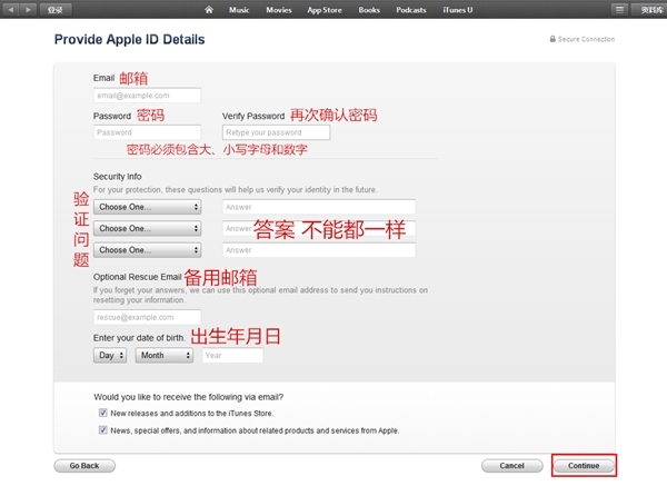 itunes账号英文注册问题,因为都是英文,小编只要找谷歌翻译出中文来为大家解读,教程如下;
