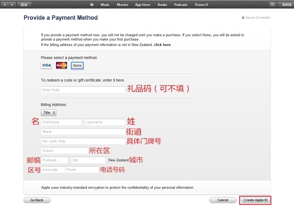 注意事项:上述是新西兰区账号的注册过程,加拿大区和澳大利亚区的注册流程一样,只需修改资料填写阶段的地址、区号还有号码,其余一切相同。