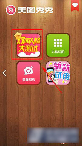 1)首先打开“美图秀秀”,然后在“双面人格大测试”中点击进去。(如下图所示)
