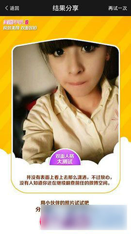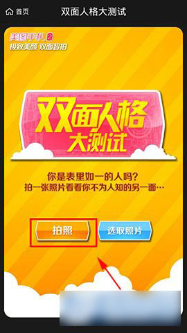 2)在“双面人格大测试”中,点击拍照,然后就可以测试出你的双面人格了。(如下图所示)