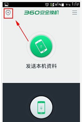 1)首先打开“360安全换机”,然后在左上角的“+”中点击进去。(如下图所示)