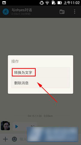 2)长按语音消息直到出现“转换为文字”为止。系统会自动的互转文字,然后在文字就在语音消息的下面显示出来。(如下图所示)