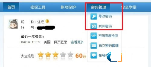 2、通过电脑登陆aq.qq.com,通过你此前设定好的密保问题来修改你的QQ密码(密码管理—>修改密码)。如果不小心忘记了密保问题,可以通过申请帐号申诉来找回密码(密码管理—>找回密码)。