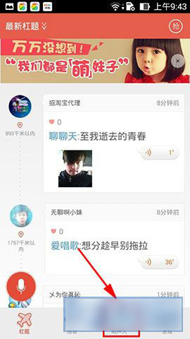 2)根据手势往屏幕向下滑动,屏幕中间出现一个圆圈,点击屏幕中间圆圈,然后出现陌生人;(如下图所示)