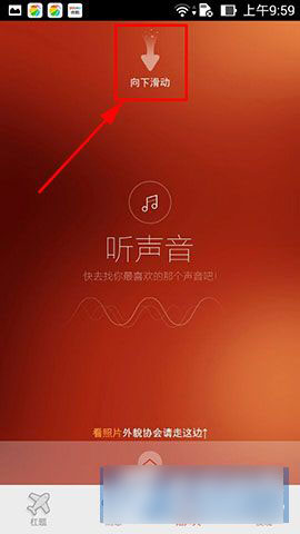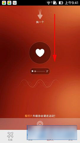 1)首先打开“抬杠”软件(点击下载),进入首页,点击“陌生人”按键,看见屏幕上方中间有一个“向下滑动”;(如下图所示)