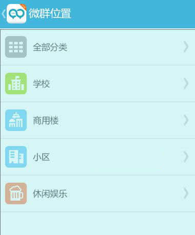 第三步:在填写微群位置的时候,应用软件提供了几个分类,我们根据自己的群选择合适的类别,选择合适的类别之后,我们选择自己微群的一个地理位置即可。