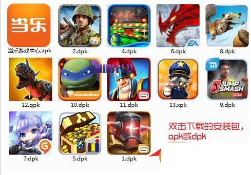 第二步、当乐游戏中心安装完成且关联了文件之后,连接手机,双击下载的apk和dpk就可以直接安装了。
