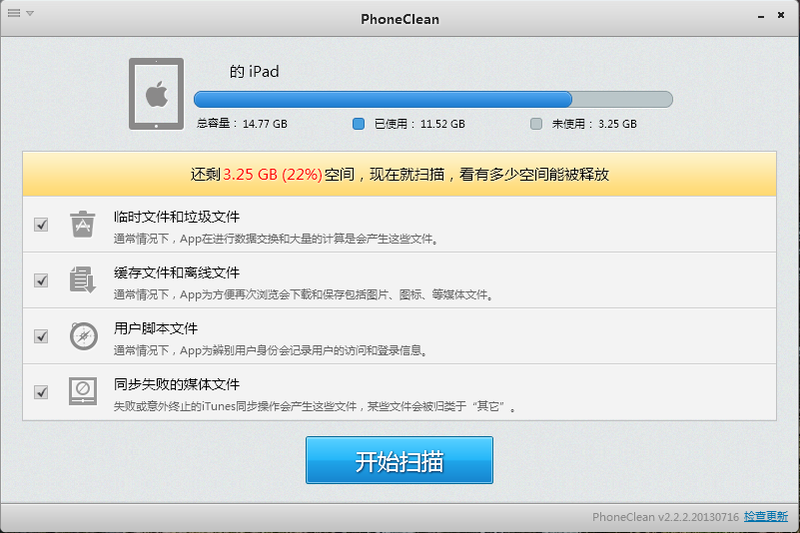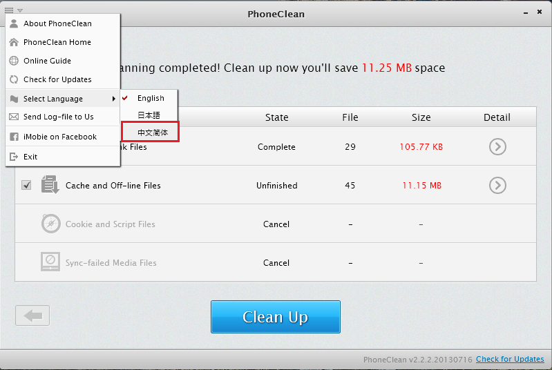 PhoneClean是一款iOS平台比较专业的系统垃圾清理工具了,可能有朋友听过这款软件,不过今天给大家分享的一般是简体中文的,嘿嘿!内置简体中文语言包了!