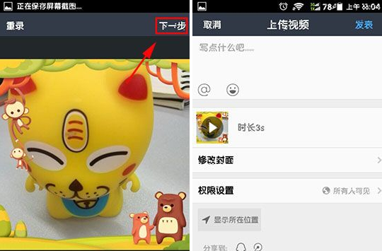 4、选择完音乐之后,点击下一步,就可以发布拍摄的视频了!