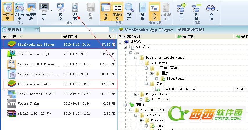 选择好BlueStacks App Player 点击分析,然后卸载。