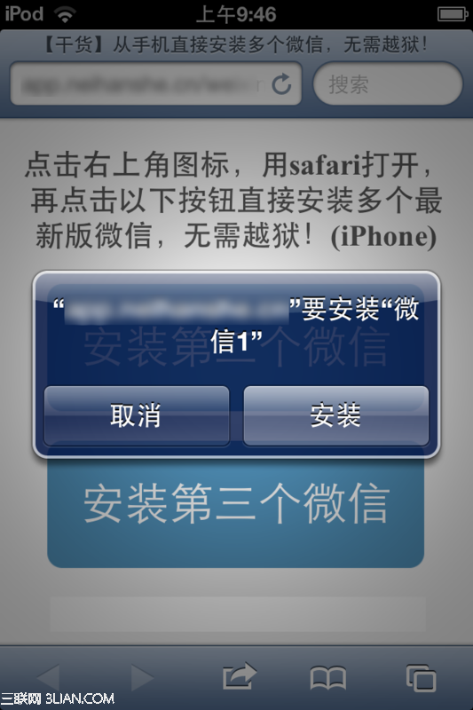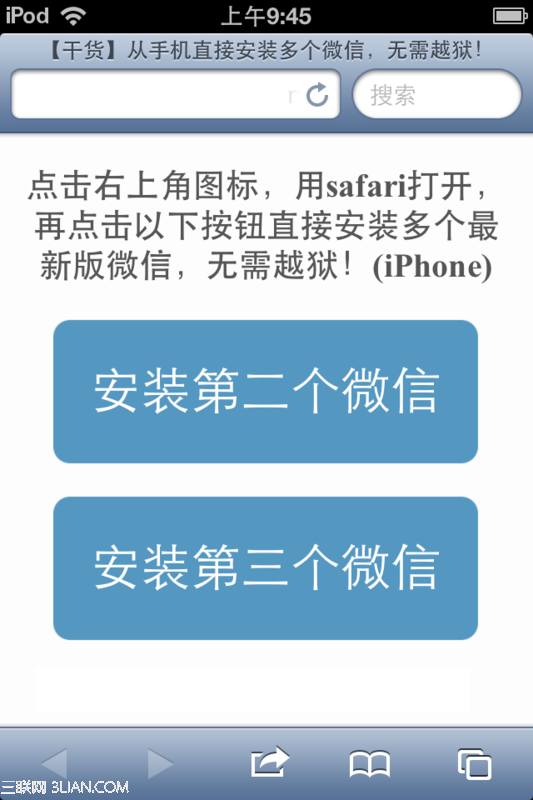 下载微信多账号,用iPhone上的Safari浏览器打开,就会看到如下界面: