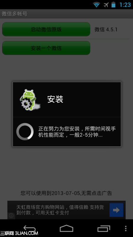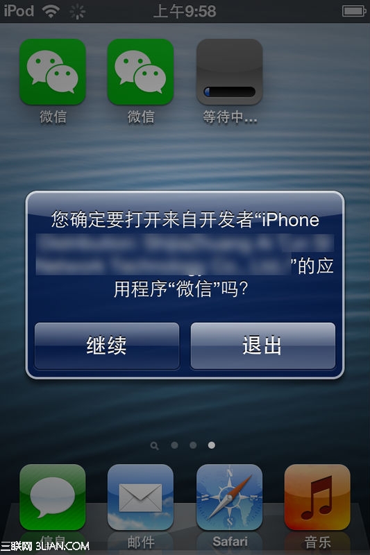 带上我们之前从APP Store上下载的,就是3个了,我们先点击安装第二个微信,之后会弹出如下界面: