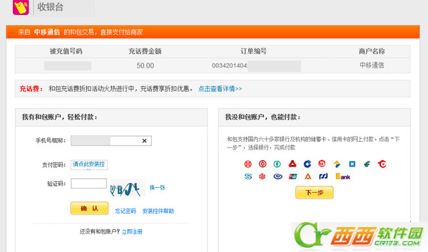 点击“缴费”后,就能进入付款界面了,在付款界面中用户可以选择“和包”账户支付,也可以使用银行卡支付。