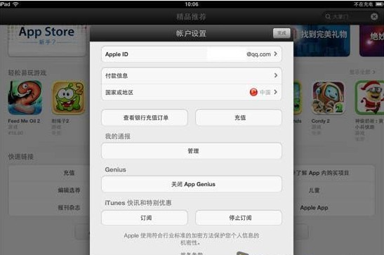 方法二:直接用手机或平板打开AppStore,滑动屏幕到最下方,找到自己的账号。点击选择【查看账户】—【充值】,只要手机上有安装银行客户端即可在线付费,最后再进入游戏直接购买钻石。