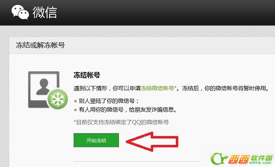 1、登录微信帐号紧急冻结通道,网址为:http://110.qq.com,然后点击“开始冻结”,如下图所示:
