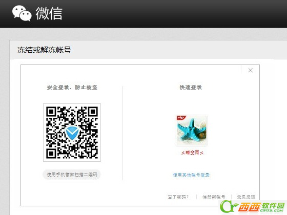 2、点击开始冻结后,会弹出QQ登录对话框,我们需要使用QQ账号登录,目前也仅有绑定了QQ的微信帐号才支持微信账号冻结。如下图所示: