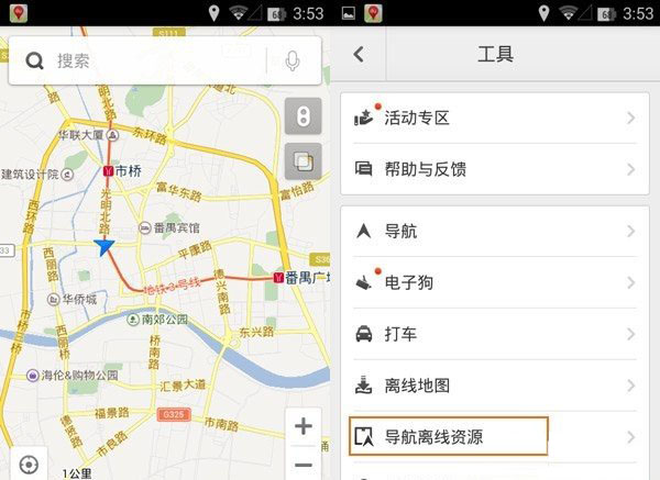 第一步、下载新版的百度地图客户端(点击下载),打开百度地图软件,点击“工具”,导航能够离线并且不需要流量,是我们需要预先下载好地图,导航进行调用才能实现零流量的。那么我们在用离线导航之前,需要点击“导航离线资源”。