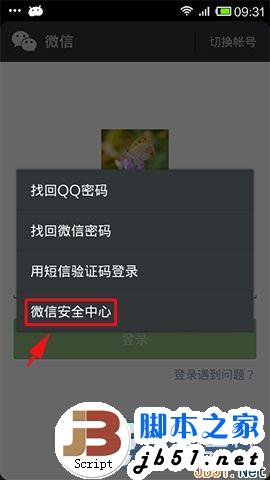 1)首先点击打开微信,点击登录遇到问题,点击微信安全中心;(如下图所示)