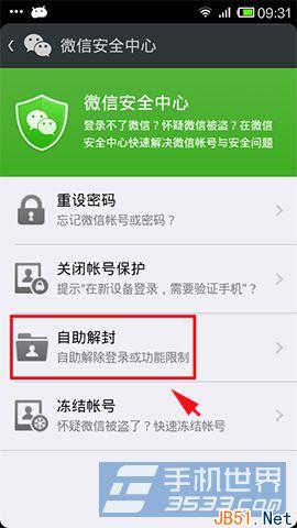 2)点击前往微信安全中心,再点击自助解封;(如下图所示)