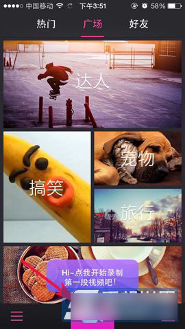 1)首先点击【美拍】打开(点击下载美图美拍),准备好了吗?点击下方【录制】按钮。(如下图所示)