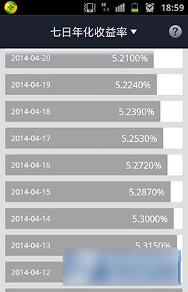 4)在七日收益率上面可以看到一个箭头,点击这个箭头,可以看到“万份收益”。然后同样是往下翻,可以看到整个最近一个月的万份收益是多少。(如下图所示)