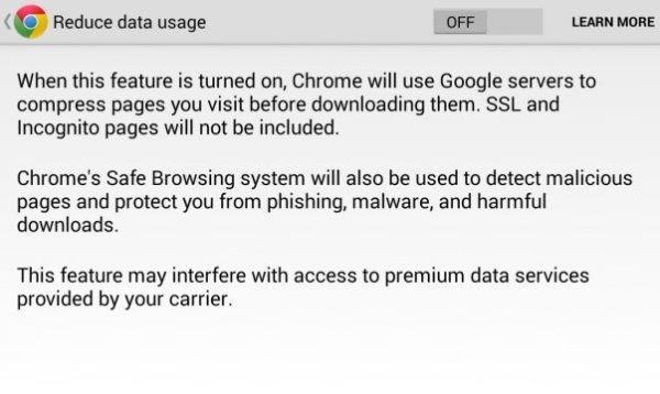 要在Android、iPhone、iPad上启用Chrome的数据压缩功能很简单,选择Chrome的“菜单”,选择“设置”,在“高级设置”里选择“带宽设置”,打开“减少数据用量”,这样就完成了。