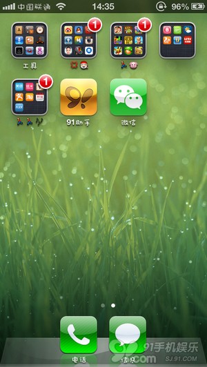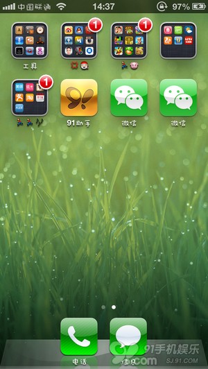 拿起你的iPhone,如下对比图,又多了一个微信5.0