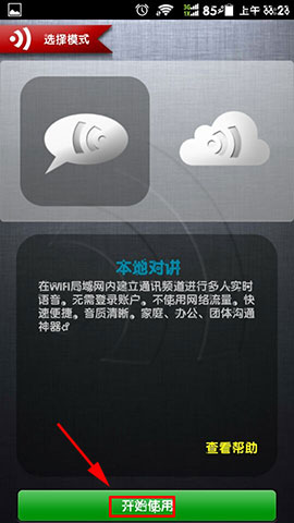 1)首先打开“微对讲”(点击下载),然后点击开始使用。(如下图所示)