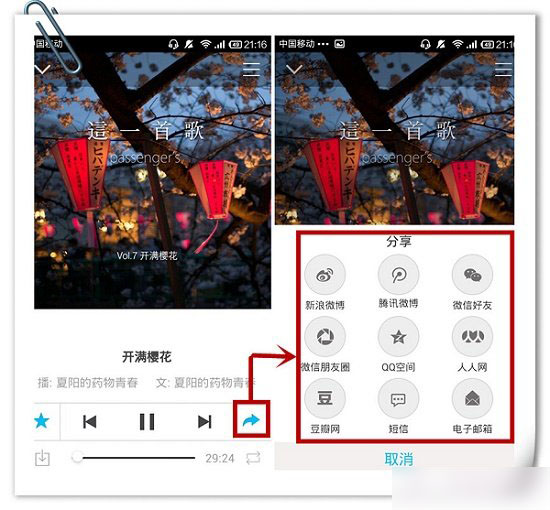 当然如果读到了喜欢的文章也可以点击小箭头来通过微博朋友圈等各种方式分享给你的好友。