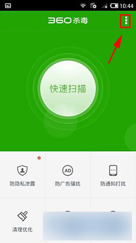 1)首先打开“360杀毒”然后在右上角的“...”点击进去。(如下图所示)