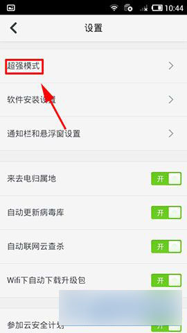 2)然后在“设置”中点击进去,再点击进入“超强模式”。(如下图所示)