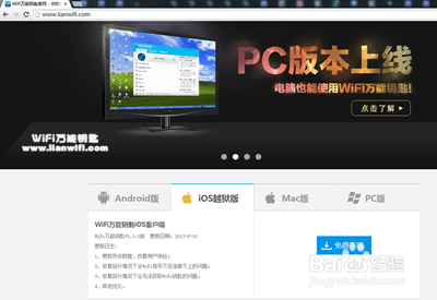 方法一:首先要保证苹果手机已经越狱,在WiFi万能钥匙官网下载IOS版