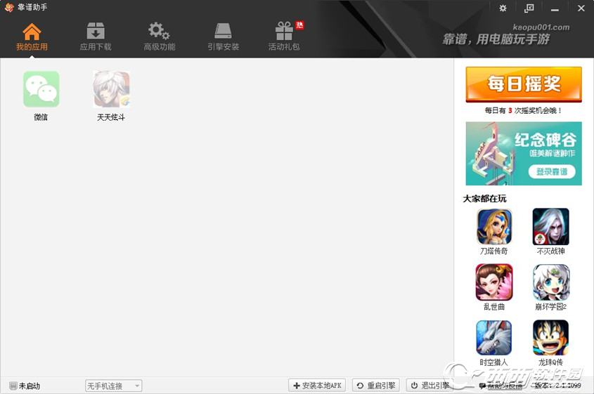 完成安装打开靠谱助手,我们需要微信及《天天炫斗》2款APP才可以实现操作。它们都可以在“应用下载”里找到。这里需要注意下,我们在引擎上,要选择极速版,包括找到的这2款APP也是一样。安装完毕后启动游戏即可,剩下就像手机上一样正常登录游戏啦!设置键位:在屏幕右下角设置按键,技能的要在副本中设置。