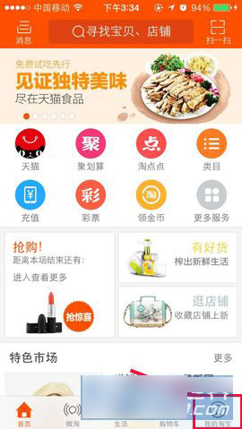 1)进入手机淘宝后,点击右下角的【我的淘宝】,然后点击【我的淘宝】界面栏里的【代收货】。(如下图所示)