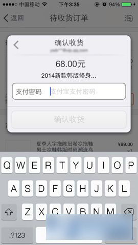 2)进入【代收货订单】界面里选择你已经收到商品的订单,然后点击订单后面的【确认收货】按钮,输入【支付密码】后就可以确认收货了。(如下图所示)