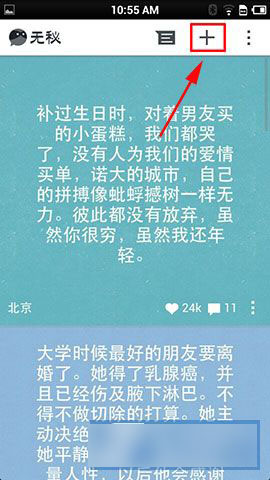 1)首先打开“无秘”,然后在右上角的“+”中点击进去。(如下图所示)