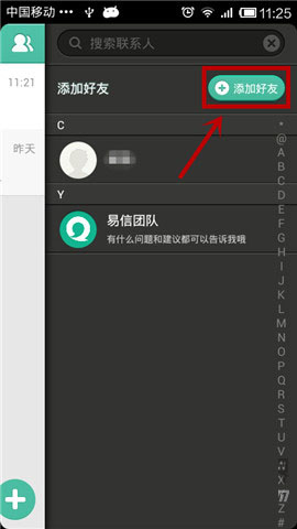 1)先下载好【易信】点击下载,打开易信界面点【右上角】图标。
