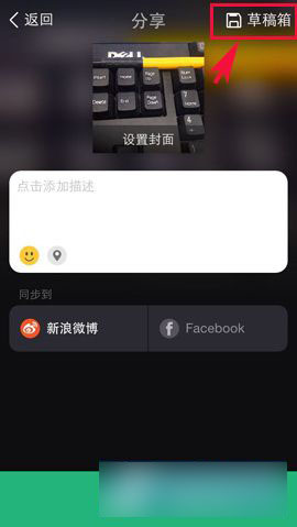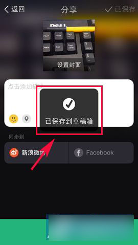 1)在美拍最后的分享界面里,大家不要点击分享就不会上传分享出去了,想要保存可以直接点击右上角的【草稿箱】,点击后会弹出提示【已保存到草稿箱】即可。(如下图所示)