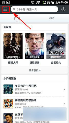 1)首先打开“手机迅雷”,然后登录账号,在左上角的三横中点击进去。(如下图所示)