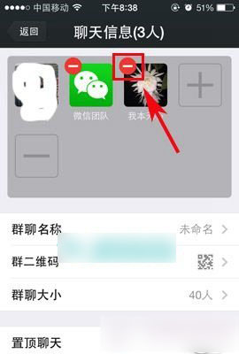 3、接下来就可以看到微信群成员了,并且在微信群成员的头像左上角有一个“一”图标按钮,如果要踢人的话,点击对应微信成员上的“一”图标即可删除成员。