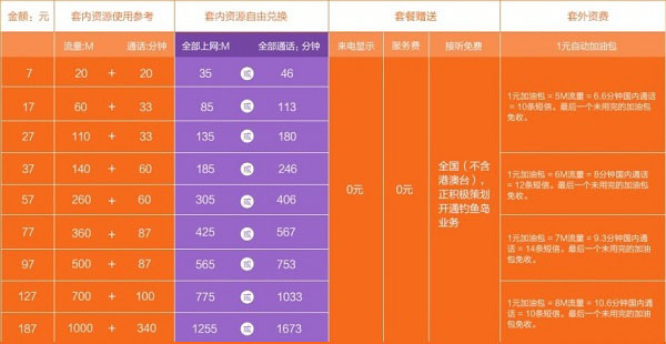 从阿里通信公布的虚拟运营商业务170号段资费来看,最大的看点莫过于无服务费、无月租和漫游费,全国接听免费,用户入网首月,可从0元起步,按照1元加油包自动叠加收费:0-37元间,每使用5M流量计费1元;37-77元间,每6M计费1元;77-127元间,每7M计费1元;127元以上,每8M计费1元。